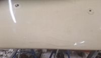 Jeg tenkte jeg skulle se litt på denne motorluka også, og problemet her er disse sprekkene bak/under skiltet: