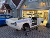 Nå er litt over halve bilen klar med 320 papir, så håper jeg får noen timer i helga sånn at jeg får vært over hele bilen. Da er planen å løfte karossen av bunnplata og få lagt på epoxy og etterhvert slipegrunning på hele bilen.