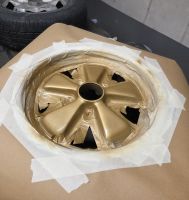 Prøv også med en matt lys grå i bunn (der det pleier å være sort), er nok finest med bare to farger på felgen, matt sølv i bunn, polert kant og gull eiker?