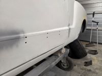 Det er et par steder på den bakre hjulbuen som må masseres litt også, før jeg kan snu karosseriet rundt og gjøre det samme på andre siden.