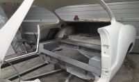 Ellers så ryddes det litt, og jeg tenkte å samle litt løse deler for å frigjøre litt plass, så da hang jeg på dører og panser på karosseriet, sånn at jeg kan få satt bunnplata på et stativ og få begynt så smått på den: