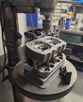 20260115_203640.jpg (62 KB. 800x518 - vist 111 ganger.) Den er ganske smart designet og den kom flatpakket så jeg må bare punkte sammen delene så blir det en stabil og god base for å maskinere både styringer og seter. Jeg var så heldig å få kjøpt en god gammel Strand søylebormaskin fra jobben for noen år siden, så dette bør bli en god solid base for å kunne fikse disse (og andre) toppene: