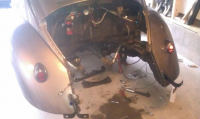 Da er maskinisten i gang igjen, vasket. Cluch justert, og gearkasse ser ut til å gå i alle gear. Foringa i gear overføringa bør byttes i vinter. Blir spennende å kjøre en lengre tur når fanger, bakplate og motorlokk er på plass.. men det får bli etter en uke på ferie.
