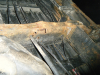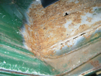 Mildt sagt er da rust på alle rammedeler(=alle utriggarar, indre + ytre kanal, tverrbjelkane, og dei I-bjelkane under golvet..