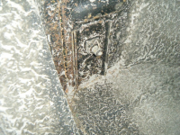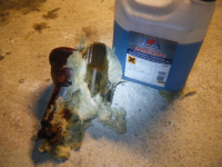 Her er nokon funn frå rottereiret under baksete Blunker Frostveska er fyrste gong eg har funnet i luftkjølt bil.. tydligvis ein franskman som har brukt dette på spylartanken hehe. Legg merke til den flaskejekken og glavaen med avstøyp frå golvprofilen.....= all glavaen er fuktig under og når det er kaldt so frys det.