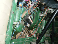 Legg merke til den tjukke raude kabelen som henger midt i bildet her..... den står det 12volt på heile tida og den henger og dingler under motoren her, og gjett om det gnistrar om du er borti den Øyerulling Bilen er/var ein sjølvantenneleg dynamitt!!