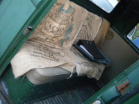 Her er nokon funn frå rottereiret under baksete Blunker Frostveska er fyrste gong eg har funnet i luftkjølt bil.. tydligvis ein franskman som har brukt dette på spylartanken hehe. Legg merke til den flaskejekken og glavaen med avstøyp frå golvprofilen.....= all glavaen er fuktig under og når det er kaldt so frys det.