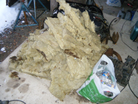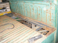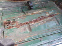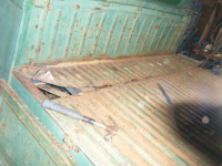 Har fått vekk all den forbanna glavaen baki.. Det er sanneleg litt av ei rustbomba! All glavaen er fuktig, og plandelen som er fremst mot bilen er jo ikkje tett so da har komt ganske mykje vatn inn derifrå og rett ned i glavaen.. Alt baki golvet og rundt der er fuktigt.... og rusta Øyerulling Tvilende Eg tenkte eg skulle sleppa undå å skifta golva bak men det er ikkje ut som det er håp for det lenger! Det er rustflekker, sprengrust og hol altfor mange plassar til å lappa da saman..