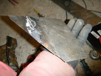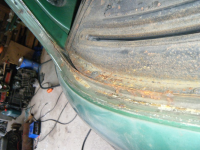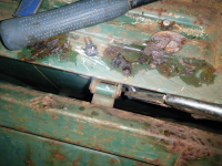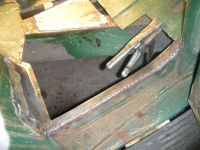 Skar vekk innlangs den fremste plata for å få vekk planet. Det kan henda det vert utskifting av den plata og vist eg får kontakt med gerson. Den er veldig bananbulkete og har rust nede..