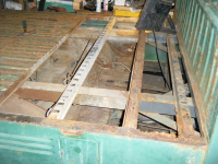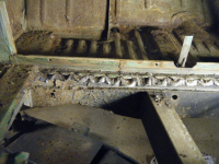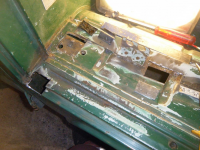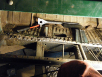 Med ein ny stabel kappskjever var det endeleg håp for å få ut den fordømte forsterkinga under bakseten.. det viste seg att platene som tanken kviler på var sveist fast i forsterkingen derfor hang den so godt sjølv etter att alle punkta var meisla opp.. Satsar på å gjennbruka denne forsterkinga med noko oppretting og sliping.