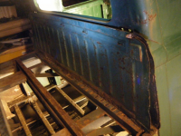 Sånn, nok eit stort stygt hol i bilen. Retta ogso opp kanten oppe og nede, gjenstår å slipa vekk restar av sveisar langs dei to kantane mm.