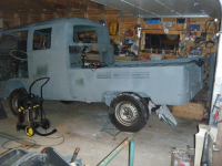Alle lause deler som trengte sandblåsing vart tatt med, Unntatt Bakre støtfangar med hengarfeste... Når eg såg nermare på det so fant eg ut att det var beyond rescue... eller da kan jo sikkert sveisast saman på eit vis, men eg vil ikkje få noko telefon om att eit hengarfeste datt av og att ein bilhengar med lass trilla bakover nedover ei gata i oslo Glad. Så Eivind om du skal ha krok vil eg anbefala å leita etter eit nytt hengarfeste og gjerna ogso ein ny fangar, den er dårleg den her..