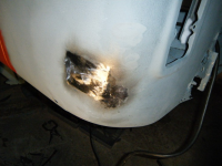 Rust skjert ut, etter å ha sveist att nokon mindre "pinholes"