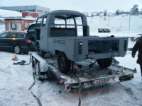 Gløymte å oppdatera her.. På fredagen so fekk me lesst dokaen oppå hengaren og gjort klar til tur ned til sandblåsing  Og der er den endå, og skal vera klar til onsdag. håpar å få henta den på onsdag ettermiddag - kveld. Her er eit par bilder Dokaen gjer seg klar til å reisa vekk litt