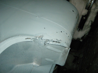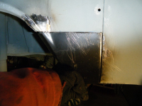 DSCF3855.jpg (94.32 KB. 733x550 - vist 447 ganger.) Ny plata laga til og sveist på plass, gjekk greitt, litt kurve innover nede i eina hjørna men da ordna seg med ein hammar. fekk og på plass litt punktsveiser langsetter kanten på midten der...