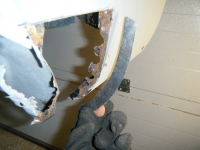 DSCF3830.jpg (90.09 KB. 733x550 - vist 444 ganger.) So til den største utfordringen.. og da var å laga den indre forsterkingen som skal vera bak ytterplato(den som var aldeles vekkrusta) Den plata har to kurver som begge bøyer seg innover nede.. var vanskeleg å laga, og mykje tilpassing men alt går. klarte sjølvsagt ikkje laga da i ein bete, då måtte eg hatt ein sånn kjekk krympar og strekkar. men eg klypte til flate plater med kurven på plass, og bøya dei saman inntil ytterplato og sveiste dei på midten.