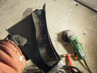 So til den største utfordringen.. og da var å laga den indre forsterkingen som skal vera bak ytterplato(den som var aldeles vekkrusta) Den plata har to kurver som begge bøyer seg innover nede.. var vanskeleg å laga, og mykje tilpassing men alt går. klarte sjølvsagt ikkje laga da i ein bete, då måtte eg hatt ein sånn kjekk krympar og strekkar. men eg klypte til flate plater med kurven på plass, og bøya dei saman inntil ytterplato og sveiste dei på midten.