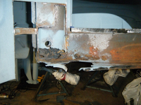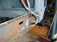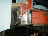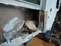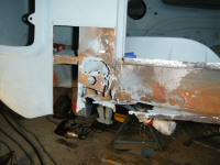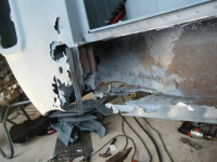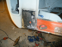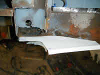DSCF3872.jpg (108.91 KB. 733x550 - vist 563 ganger.) So begynta eg nedi problemhjørna. Bakplato valgte eg å gjera på spar tid-metoden. skjera, riva og slipa. istaden for å bora bora og bora på ørtenvis av hol for so å sveisa og slipa alle hola som vert på plata bak.. Eg hadde tenkt å bruka lista til å fiksa den dårlege lista på hengslene til motorluka men eg får heller laga dei platene sjøl