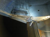 DSCF3897.jpg (106.05 KB. 733x550 - vist 456 ganger.) Og voila. bakerste plata er sjølvsagt grunna bakom der den er inni ramma og sveisegrunning vert alltid brukt der to plater overlappar kvar andre, altso ved punktsveis. dreneringsholet er 12mm(har ikkje større bor)