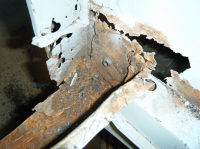 Kanal fjerna og me ser botnen av d stolpen + restar av sveis/golv rundt oppe.
