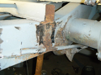 Etter å ha sveist på endå ein forsterking for å halda rammo på plass + tatt av bremserøyret, so begynte eg å fjerna litt groms