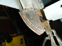 Den utvendige lappen var i brukbar stand så den vart slipt ned på begge sider og innsida malt so vart den sveist på igjen. så so langt kom eg før da va tomt fø tråd...