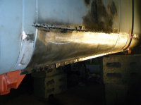 DSCF9102.jpg (110.2 KB. 775x581 - vist 353 ganger.) lagde ny kant her. den gamle tingen var ikkje mykje å skryta av. vart litt bølgeblekk over sveisen men da vart da lett fiks på med krympedisken
