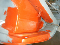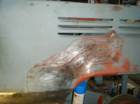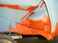 takk fø da pål,jepp har opplevd fleire gongar att den tar tak..spesielt skummelt inni røyrer eller i små hol som skal rundast av. men den gjer nytten. no har eg levert tebake den eg lånte men eg får ta å bestilla nye deler til min eigen so eg får liv i den igjen. i helga har da stort sett skjedd lite på bilen pga mykje turar rundt land å strand.blandt anna for å henta meir arbeid... fekk gjort noko på laurdagen ei lite stund og idag fekk eg kjøyrd på med ein ny solid runde med krymping. sidepanelet bak er voldsomt deformert so eg har bestemt meg for at da e berre te å få orden på. so eg har begynt å retta opp på da. eg har ein mistanke om at sandblåsinga kan ha hatt noko med da å gjera, men eg har ikkje sjekka korleis da var før blåsinga på dette panelet.. Her e innerskjermen ferdig slipt,frest pussa å malt. hakket bedre no enn da var tidlegare ja:)