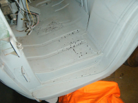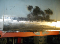fekk gjort noko på laurdagen ei lite stund og idag fekk eg kjøyrd på med ein ny solid runde med krymping. sidepanelet bak er voldsomt deformert so eg har bestemt meg for at da e berre te å få orden på. so eg har begynt å retta opp på da. eg har ein mistanke om at sandblåsinga kan ha hatt noko med da å gjera, men eg har ikkje sjekka korleis da var før blåsinga på dette panelet..