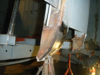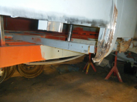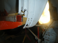 DSCF2887.jpg (86.46 KB. 640x480 - vist 415 ganger.) her ser me sovidt restane etter forsterkingen til sidepanelet, som eg kappa av. vuderte å lappa den gamle, men fant ut at da var bedre med ny. i bakgrunnen har eg merka opp for å kappa av litt av golvbjelken. pga eg må ha tilgang til d-stolpen