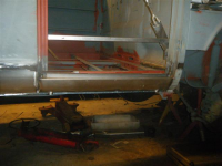 her e plato på andre sio av d,stolpen og på plass. og so satt eg på att enden av golvbjelken. no e da kun utrigger og bjelke nr 2 bakifrå som ikkje er klare. men dei sett eg på når innerkanalen er på plass pga att da lettar tilpassinga pga for kort utrigger i beste repro ånd(men stempla av vw!?)