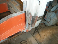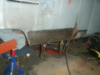 DSCF4112.jpg (77.45 KB. 640x480 - vist 668 ganger.) her e plato på andre sio av d,stolpen og på plass. og so satt eg på att enden av golvbjelken. no e da kun utrigger og bjelke nr 2 bakifrå som ikkje er klare. men dei sett eg på når innerkanalen er på plass pga att da lettar tilpassinga pga for kort utrigger i beste repro ånd(men stempla av vw!?)
