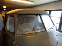 En gang i tiden har bussen blitt skutt. Pent sår, kula inn på ene siden og her er utgangen på andre side:)