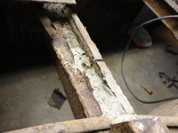 DSC00638.JPG (100.91 KB. 600x450 - vist 398 ganger.) Den er så godt som urørt bortsett fra den venstre kanalen som har blitt byttet tidligere og da var det popnagler som ble brukt. Det virker fortsatt solid så den skal få lov til å være som den er.