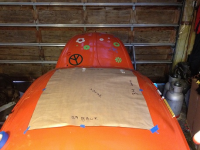 Men nå er det tid for å gå over karosseriet. Jeg har funnet ny lakk, starter med å kutte i taket.