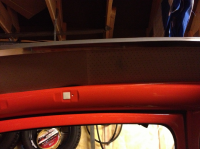 Har nå begynt å poppe fast rammen rundt hullet, ikke enkelt å stoppe drillen før den går gjennom taktrekket ...  Tvilende