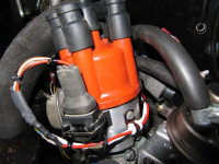 Årsaken til valget var at Golf 2 har en type "hall sensor" i fordeleren som sender stabile og cleane pulser på en spenning en selv kan velge (sjekk megamanual -> hall sensor, "pull-up"-resistor). Deler som fordelerlokk og rotor er likt T1, og det er enkelt å modifisere akslingen for å bruke et Type 1-fordelerdrev. Fordelerkroppen må dreies om en del for å få den til å passe i T1-blokka, men dette er ikke store utfordringen for en maskinarbeider eller hvis en har en dreiebenk stående.