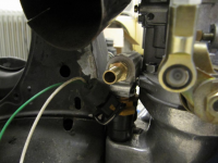 Slik ser modden av viftehuset ut for å få plass til dysene. Folk flest reagerer når noen har kappet i et std. VW-viftehus for å f.eks. forbedre kjøling. Det er ingen grunn til bekymring for denne modden. Eneste som har blitt gjort er å flytte friskluftsuttakene litt oppover på huset, samt at de to "hofteformede" innsnevringene under uttakene har blitt fjærnet totalt - her går det nemlig ikke noe kjøleluft originalt.