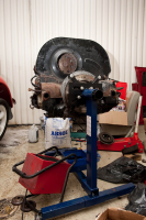 Mesteparten av søndagen gikk med til å demontere motor. Jeg har aldri brukt så lang tid på å plukke ut en motor. Brukte 2 timer på å få den ut. Burde ikke ta mere enn 30 minutter, men når noen har skrudd sammen motor og girkasse med verdens største latmann og brukt kun 3 bolter. Selv satt jeg kun med en 17mm fastnøkkel. Men den kom ut til slutt.
