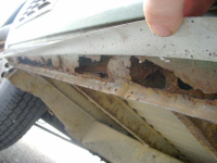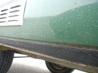 I hjulbuene er de eneste stedene der det er beskyttet med sånn tjæreaktig belegg (vet ikke hva det norske navnet er). Resten av undersiden er orginal, kun beskyttet med voks. Jeg vil gjerne beholde det slik, men har begynt å fjerne de løse stedene i hjulbuene på lete etter rust. Er det noen som har noen tips ang. fjerning av dette (uten å skade lakken på undersiden)? Til nå har jeg brukt en plastikkskrape, men er ikke noen effektiv måte å jobbe på føler jeg. Nå som jeg nesten har fått fjernet alt hadde det vært fint å fått den siste  resten også..