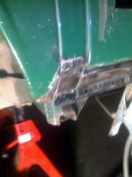 Nå har jeg begynt å "reparere" mitt aller første sveisearbeid i gulvet inne (som jeg ikke ble fornøyd med) og har fått sveiset inn noen biter der.. denne gang kant i kant ;-).. en dårlig ting er at sveiseapparatet har sluttet å virke Trist Dette stopper opp fremdriften ganske så mye.. Jeg har prøvd å finne på andre ting å drive med i mellomtiden, og har nå begnt på den ene støtfangeren bak som var noe rust på. Slipt ned, grunnet og slipt og grunnet.. tar sin tid å tørke når temperaturen ikke klarer å komme over 10 ´c.. Jeg har også skrapt hele gulvet innvendig for gammel maling/lakk.. 5 lag!! ytterst svart, så grønn, så rød, så orginal grønn og så grunning... mye kjemikalier som måtte til for å fjerne det.. har fått det ned til rød/hvit og tar resten med sliping.. Jeg har også prøvd å finne mysteriet bak starteren min, men har ikke kommet noe videre. Bygget den ut for andre gang.. Ja den starteren er et eget kapittel for seg selv hvis jeg skal begynne å forklare hvordan den oppfører seg.. et mysterium.