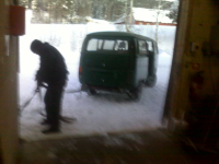 Ja da har det gått en stund siden forrige oppdatering. Har ikke skjedd så alt for mye med bilen i mellomtiden, men noen kvelder denne uken har jeg fått tilbragt i garasjen. Jeg fikk hjelp av en kamerat til å skyve bilen inn i den oppvarmede garasjen, da starteren ikke er på lag med meg. Begynte å bli litt kaldt å være ute i -25 ´c.. Vi fikk til slutt parkert den med jekkestropper og skyving..