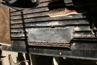 Etter en rengjøring av undersiden og nøye undersøkelser fant jeg noen flere ruststeder. Heldigvis ingen store overaskelser! Litt rust i den ene (utriggeren)?!? på høyre side foran, noen hull i gamle setefester i gulvet, noen småhull i kanalen på høyre side som kan lappes på inn- og utside.. Siden bilen skal bli en camper, har jeg ikke planer om å sette inn seter, derfor har jeg bare sveiset inn nye gulvstykker uten å ta meg bry med å lage nye fester osv.(dette var faktisk det første jeg sveiset av alt, så nå er jeg ikke så fornøyd med arbeidet.. men lar det være foreløpig så kan jeg heller ta det igjen når jeg tid og overskudd. Jeg er ikke redd for at det ikke skal holde). Jeg vil ha treplate som gulv senere så da synes ikke dette så godt.. gleder meg til å bli ferdig med rusten og få begynt med innredningen, håper dette blir like etter nyttår.. Her er noen bilder fra gulv og utrigger: Her oppdaget jeg litt rust. Heldigvis ikke noe utover det man kan se på bildet..