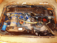 Eg fekk igårkveld bilen inn i garasjen, og idag fekk eg tid til å ta ein sjekk på bilen. Det viste seg etterkvart att den egentlig ikkje er så galen for å vera "tukla" med etc. Det mesta som er gjort er reverserbart, som varmeapparatet som er fjerna aldeles, men heldigvis så er vaier etc intakt så det er nesten bolt on, bortsett frå ekosen... Det er litt rust på bilen, hovedsaklig frammi innerskjermane, men (heldigvis?) for min del, so ska eg ikkje sveisa noko på bilen no, kun service and repair..