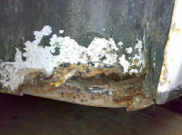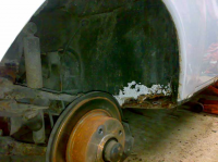 Se i innerskjermene foran der forsterkningene er, bak 40år+ fugemasse, innenfor bakskjermene