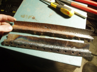 Her ser dekan tydeleg kanten under som inneheld mange punktsveisar som må borrast opp.