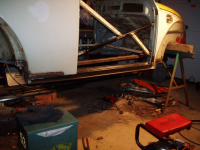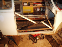 VIKTIG: Karosseriet MÅ avstivast med ei ramma innvendig før du fjerner noko som helst kanal. Dette er fordi att døropningane ikkje skal flytta seg under surgery.. Ja for varmekanalen er jo eit av dei viktigaste berande elementa i karosseriet. NB: denne ramma er ikkje god nok, dette var eit av punkta som var endra undervegs, kjem meir info om dette seinare.
