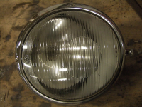 Kromen ser fin ut, reflektoren uten korrosjon, glasset ok samt pæreholder med pære følger med.