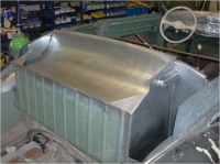 Med takprofilen fra Type 14A, lagde vi et mal-verk i tynne rør, og deretter "some serious metal shaping" med utgangspunkt i helt flat plate...