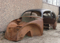 Prøvde vel også ca 1 helg på å få døråpninger til å passe, men da det fra tidligere var satt inn en ny veng kanal uten å stive av karosseriet var det rimelig frusterende å oppleve at 3 jekkestropper ikke var nok til å få døråpninger perfekt. Bunnplata hang vel kun sammen i noen dårlige tilpassede vengbiter som var forsøkt sveiset inn. Ambassade bil eller ikke, denne gjorde seg bedre som donator til 52 cabben min.